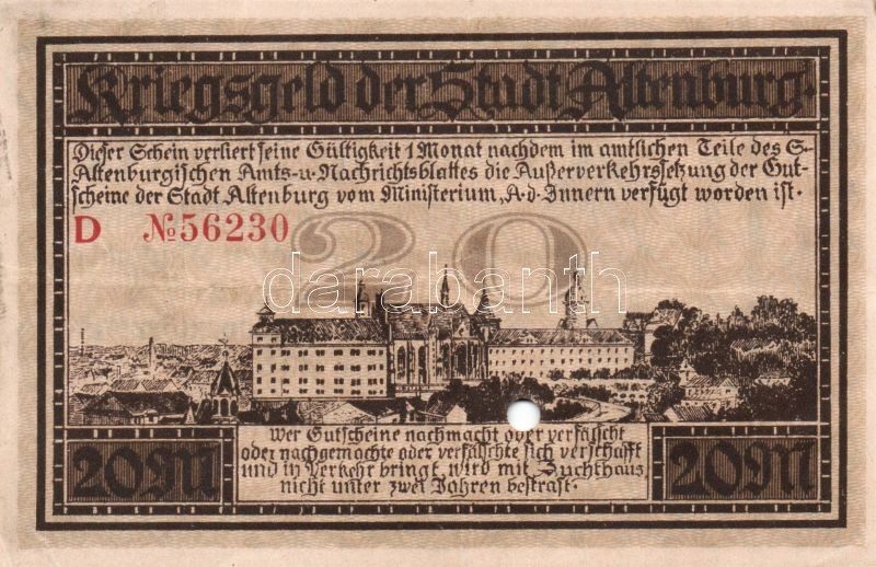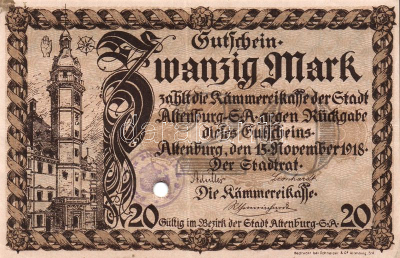 Beschreibung: Német Birodalom/Weimari Köztársaság/Altenburg 1918.11.15. 20M hivatalos érvénytelenítéssel T:II