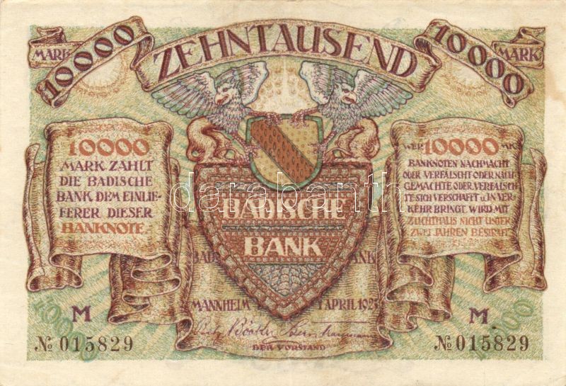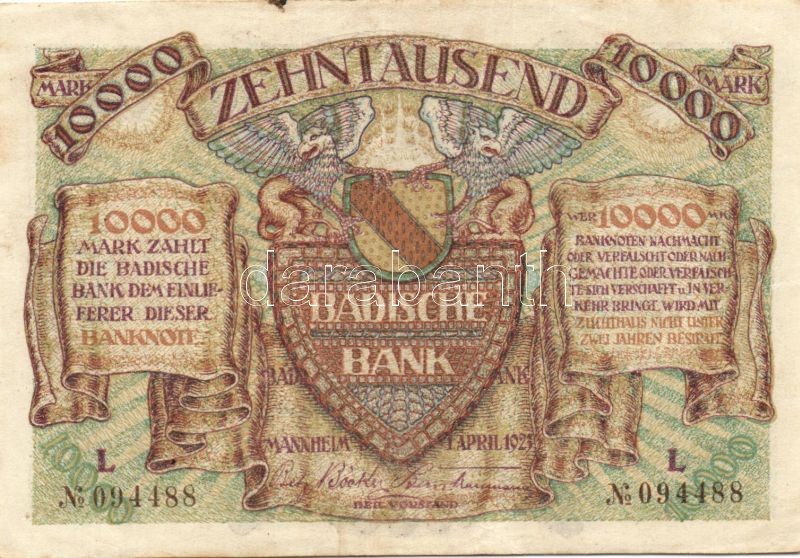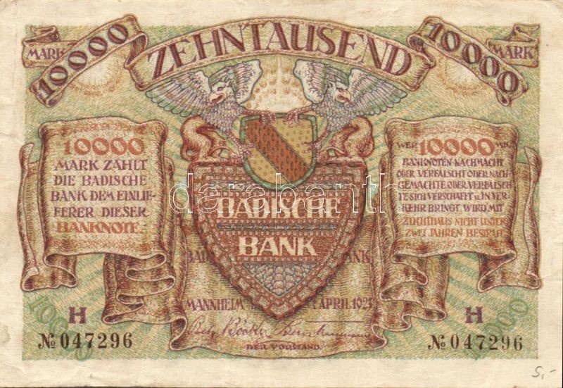 Német Birodalom/Weimari Köztársaság/Baden/Badische Bank 1923. 10.000M ... https://www.darabanth.com/de/95-Fernauktion/95.0/Numismatik/~379/Nemet-BirodalomWeimari-KoztarsasagBadenBadische-Bank-1923-10000M-4x-klf-szeriabetukkel-~II219600