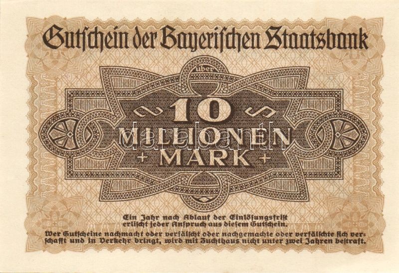 Beschreibung: Német Birodalom/Weimari Köztársaság/Bajorország/Bayerischen Staatsbank, München 1923. 10.000.000M T:I