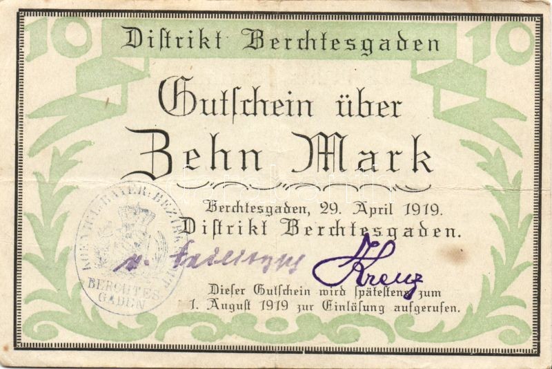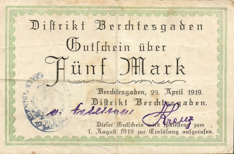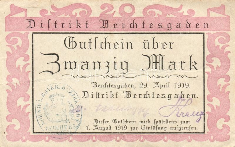 Német Birodalom/Weimari Köztársaság/Berchtesgaden 1919.4.29. 5M, 10M, ... https://www.darabanth.com/de/95-Fernauktion/95.0/Numismatik/~379/Nemet-BirodalomWeimari-KoztarsasagBerchtesgaden-1919429-5M-10M-20M-TIIIII~II219857