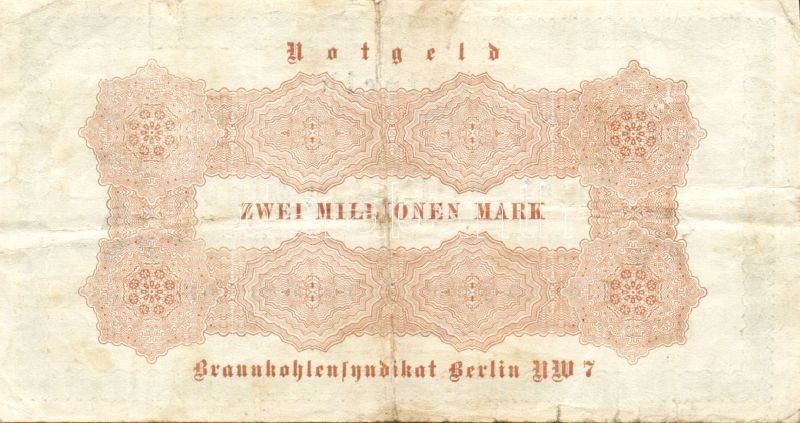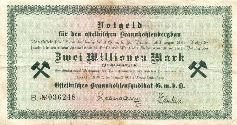 Beschreibung: Német Birodalom/Weimari Köztársaság/Berlin/Ostelbisches Braunkohlensyndikat GmbH. 1923.8. 2000.000M T:II