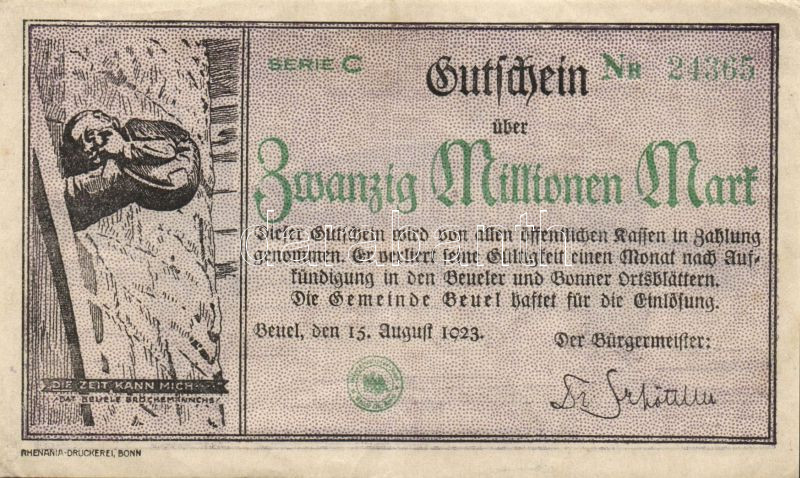 Beschreibung: Német Birodalom/Weimari Köztársaság/Beuel 1923.8.15. 20.000.000M T:II