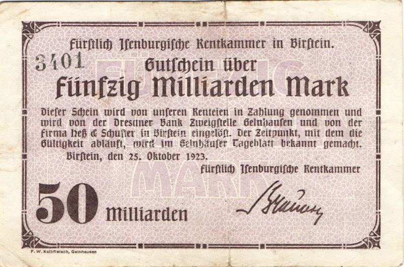 Beschreibung: Német Birodalom/Weimari Köztársaság/Birstein 1923.10.25. 50.000.000.000M T:II