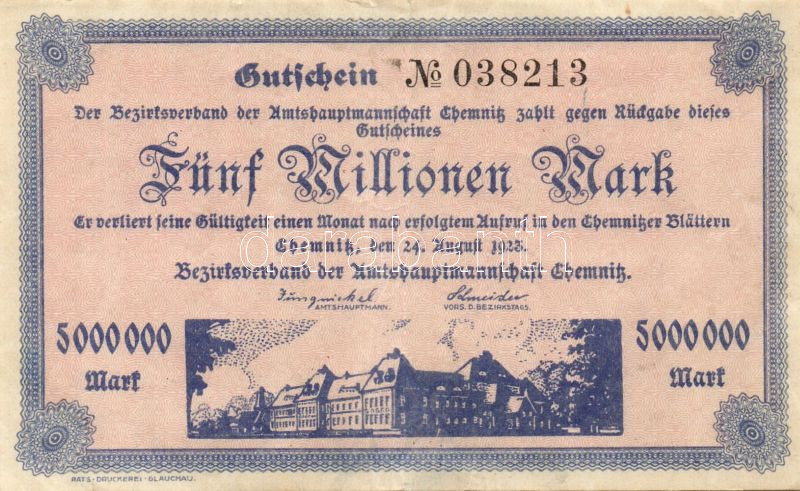 Beschreibung: Német Birodalom/Weimari Köztársaság/Chemnitz/Bezirkverband der Amtshauptmannschaft 1923.8.24. 5000.000M T:II