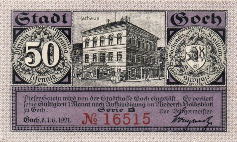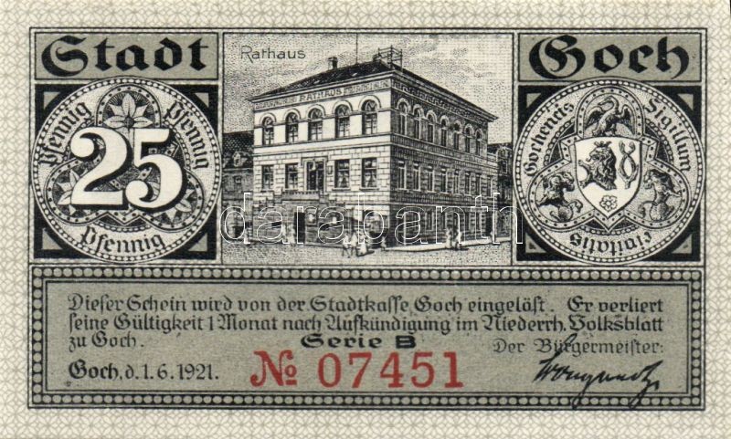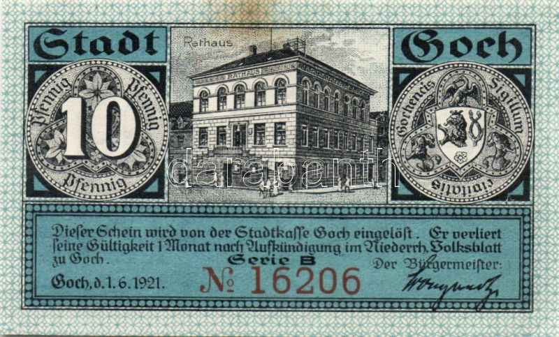 Német Birodalom/Weimari Köztársaság/Goch 1921. Seria"B" 10Pf + 25Pf + ... https://www.darabanth.com/de/95-Fernauktion/95.0/Numismatik/~379/Nemet-BirodalomWeimari-KoztarsasagGoch-1921-SeriaB-10Pf-plus-25Pf-plus-50Pf-3klf-db-teljes-sor-T~II218562