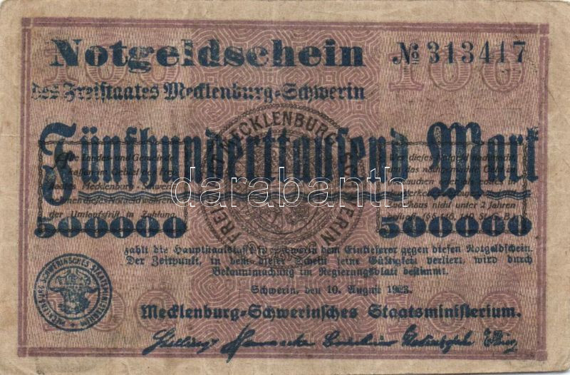 Beschreibung: Német Birodalom/Weimari Köztársaság/Mecklenburg-Schwerin/Mecklenburg-Schwerinisches Staatsministerium 1923. 500.000M T:III