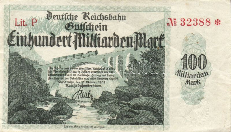 Beschreibung: Német Birodalom/Weimari Köztársaság/Német Birodalmi Vasutak/Karlsruhe 1923. 100.000.000.000M T:II/III+