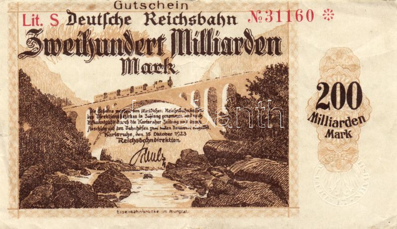 Beschreibung: Német Birodalom/Weimari Köztársaság/Német Birodalmi Vasutak/Karlsruhe 1923. 200.000.000.000M T:II