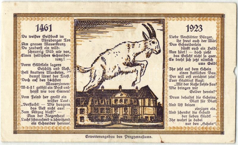 Német Birodalom/Weimari Köztársaság/Neustadt a.d. Aisch 1923.10.30. 10... https://www.darabanth.com/de/95-Fernauktion/95.0/Numismatik/~379/Nemet-BirodalomWeimari-KoztarsasagNeustadt-ad-Aisch-19231030-10000000000M-TII-bal-sz~II215597