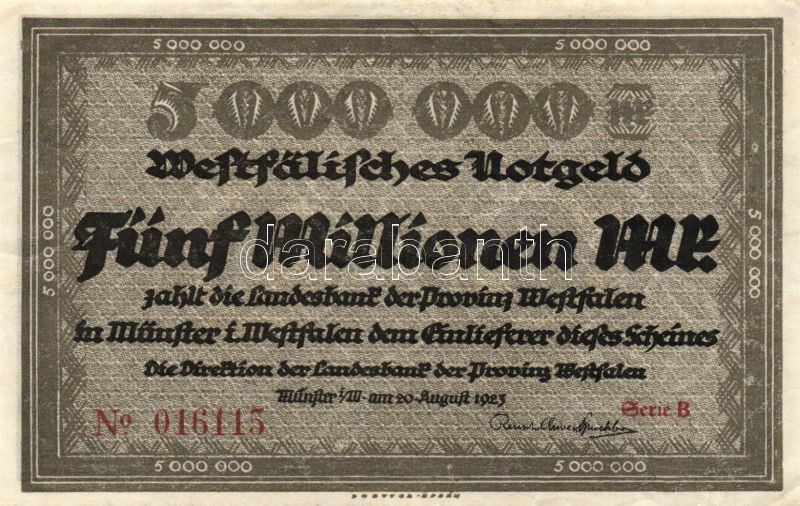 Beschreibung: Német Birodalom/Weimari Köztársaság/Poroszország/Westfália 1923. 5000.000M T:II+