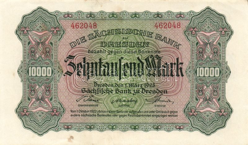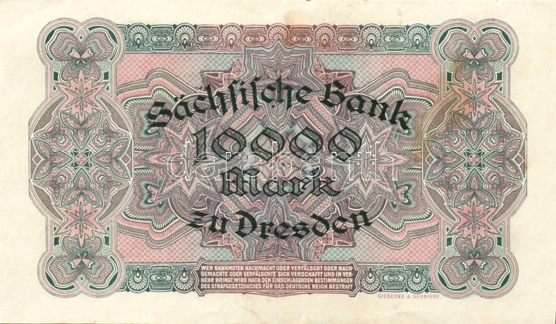 Német Birodalom/Weimari Köztársaság/Szászország/Sächische Bank 1923. 1... https://www.darabanth.com/de/95-Fernauktion/95.0/Numismatik/~379/Nemet-BirodalomWeimari-KoztarsasagSzaszorszagSachische-Bank-1923-10000M-TII~II219648