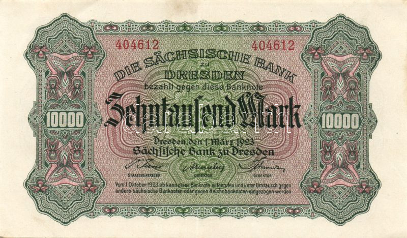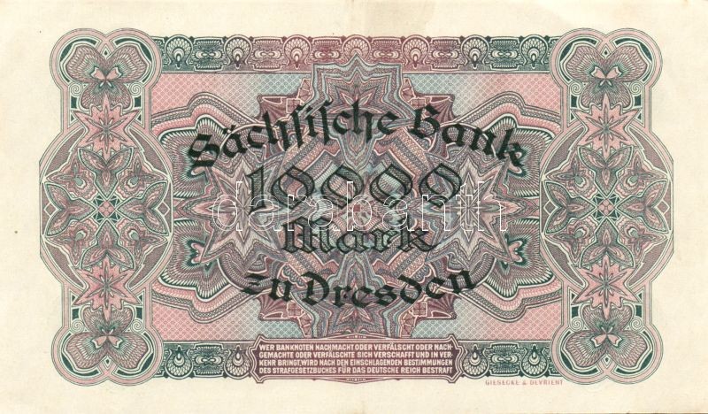 Beschreibung: Német Birodalom/Weimari Köztársaság/Szászország/Sächische Bank 1923. 10.000M T:II