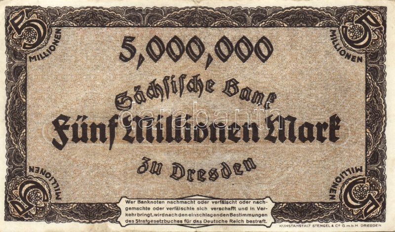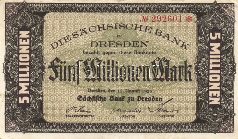 Beschreibung: Német Birodalom/Weimari Köztársaság/Szászország/Sächische Bank 1923. 5000.000M T:II