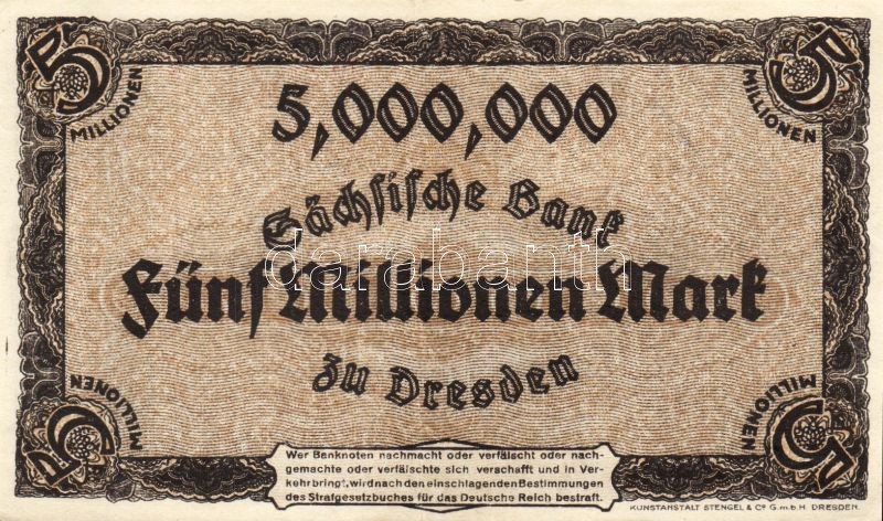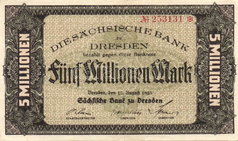 Beschreibung: Német Birodalom/Weimari Köztársaság/Szászország/Sächische Bank 1923. 5000.000M T:II