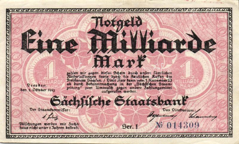 Német Birodalom/Weimari Köztársaság/Szászország/Sächische Staatsbank, ... https://www.darabanth.com/de/95-Fernauktion/95.0/Numismatik/~379/Nemet-BirodalomWeimari-KoztarsasagSzaszorszagSachische-Staatsbank-Dresden-1923-1000000~II219657