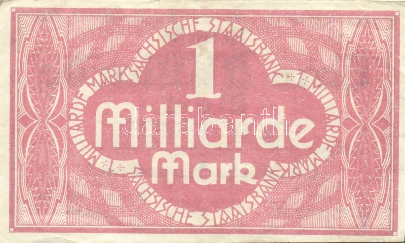 Beschreibung: Német Birodalom/Weimari Köztársaság/Szászország/Sächische Staatsbank, Dresden 1923. 1000.000.000M T:II