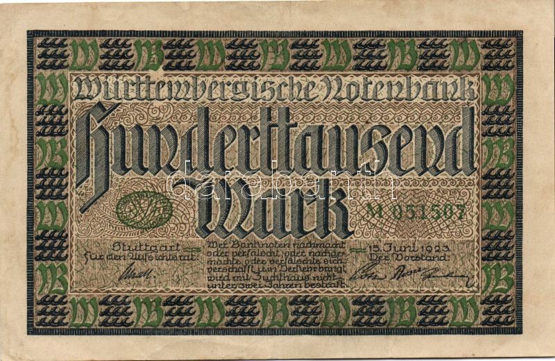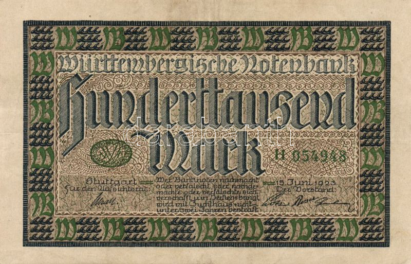 Beschreibung: Német Birodalom/Weimari Köztársaság/Württemberg/Württembergische Notenbank 1923. 100.000M (3x) klf szériabetűkkel T:II