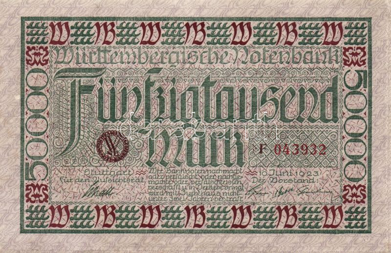 Beschreibung: Német Birodalom/Weimari Köztársaság/Württemberg/Württembergische Notenbank 1923. 50.000M T:II+