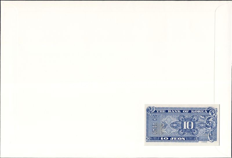 Dél-Korea 1962. 10J dekoratív, bankjegyes, bélyeges borítékon T:I https://www.darabanth.com/de/95-Fernauktion/95.0/Numismatik/~381/Del-Korea-1962-10J-dekorativ-bankjegyes-belyeges-boritekon-TI~II218218