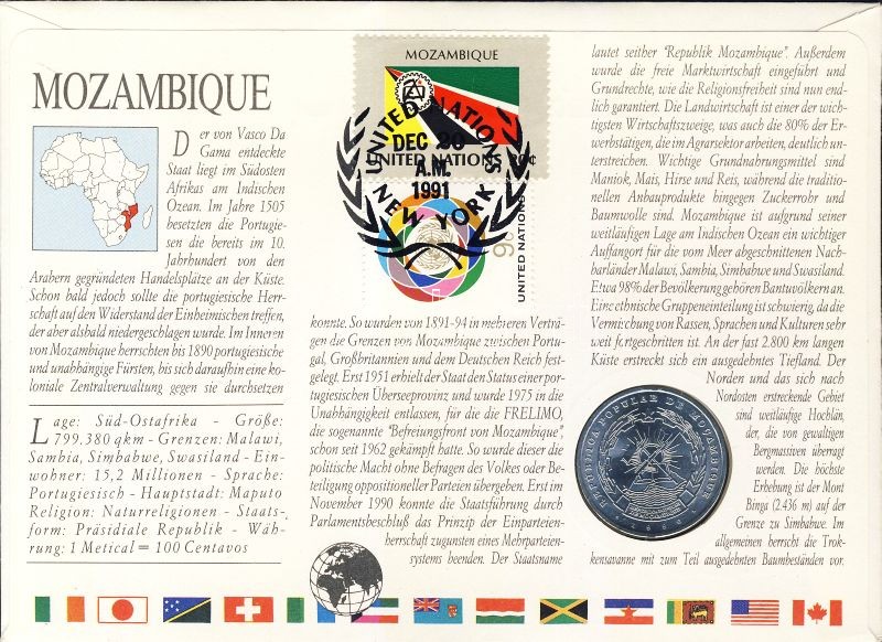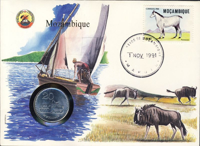 Mozambik 1986. 20M érmés, bélyeges borítékon T:1 https://www.darabanth.com/de/95-Fernauktion/95.0/Numismatik/~381/Mozambik-1986-20M-ermes-belyeges-boritekon-T1~II218177