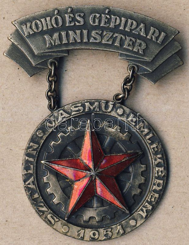 1951. "Kohó és Gépipari Minisztérium-Sztálin Vasmű" ezüstfokozatú kitü... https://www.darabanth.com/de/95-Fernauktion/95.0/Numismatik/~382/1951-Koho-es-Gepipari-Miniszterium-Sztalin-Vasmu-ezustfokozatu-kituntetes-T2~II218058