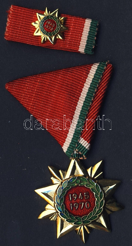 1970. "Felszabadulási Jubileumi Emlékérem" katonai kitüntetés, miniatű... https://www.darabanth.com/de/95-Fernauktion/95.0/Numismatik/~382/1970-Felszabadulasi-Jubileumi-Emlekerem-katonai-kituntetes-miniaturrel-T2-Eredeti-diszdo~II219260