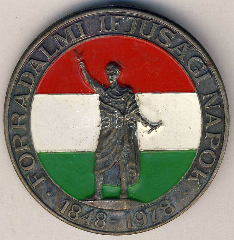 1978. "Forradalmi Ifjúsági Napok" zománcozott kitűző T:2 https://www.darabanth.com/de/95-Fernauktion/95.0/Numismatik/~382/1978-Forradalmi-Ifjusagi-Napok-zomancozott-kituzo-T2~II216254