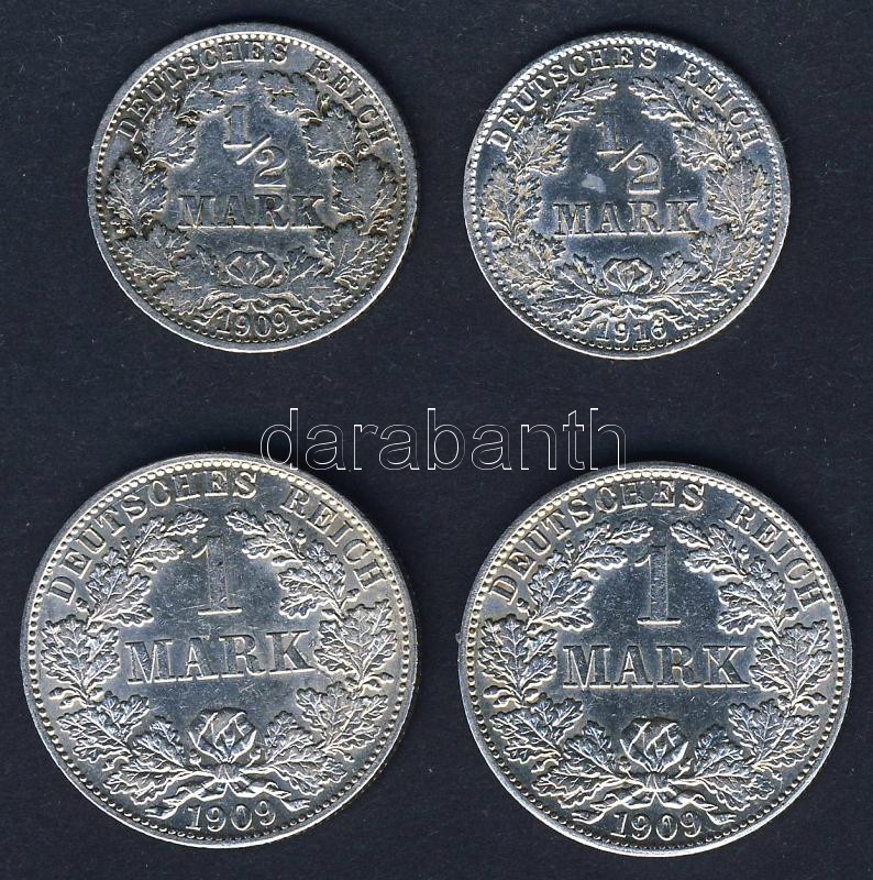 Beschreibung: Német Birodalom/Császárság 1909. 1/2M Ag (1x) + 1M (2x) + 1916. 1/2M Ag T:2,2/3