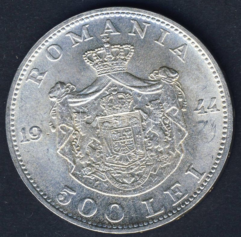 Románia 1944. 500L Ag I.Mihály T:2 https://www.darabanth.com/de/95-Fernauktion/95.0/Numismatik/~384/Romania-1944-500L-Ag-IMihaly-T2~II216713