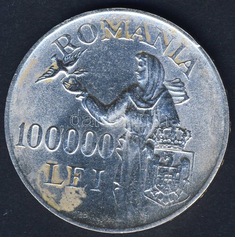 Beschreibung: Románia 1946. 100.000L Ag I.Mihály T:2 kis ph.