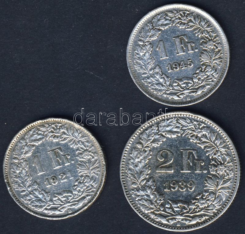 Beschreibung: Svájc 1921+1945. 1Fr Ag 2klf db + 1939. 2Fr Ag T:2/3,3+ ph.