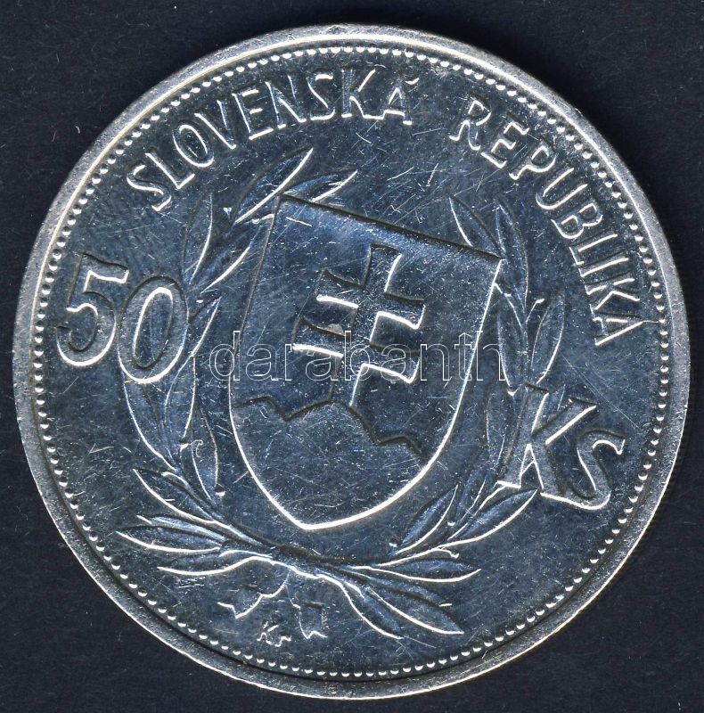 Szlovákia 1944. 50K Ag "5. Függetlenségi évforduló" T:2 https://www.darabanth.com/de/95-Fernauktion/95.0/Numismatik/~384/Szlovakia-1944-50K-Ag-5-Fuggetlensegi-evfordulo-T2~II216917
