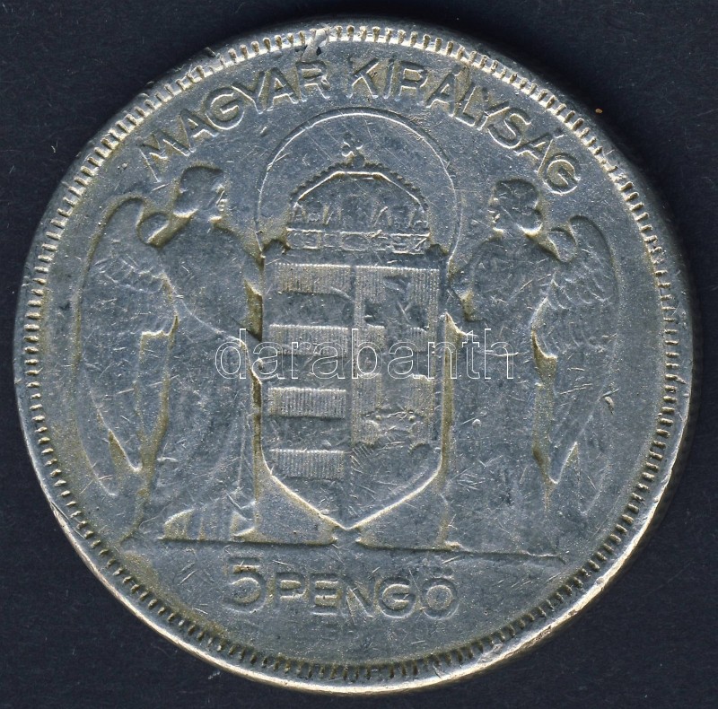 1930. 5P Ag "Horthy jobbra" T:3/4+ ph. https://www.darabanth.com/de/95-Fernauktion/95.0/Numismatik/~385/1930-5P-Ag-Horthy-jobbra-T34plus-ph~II219247