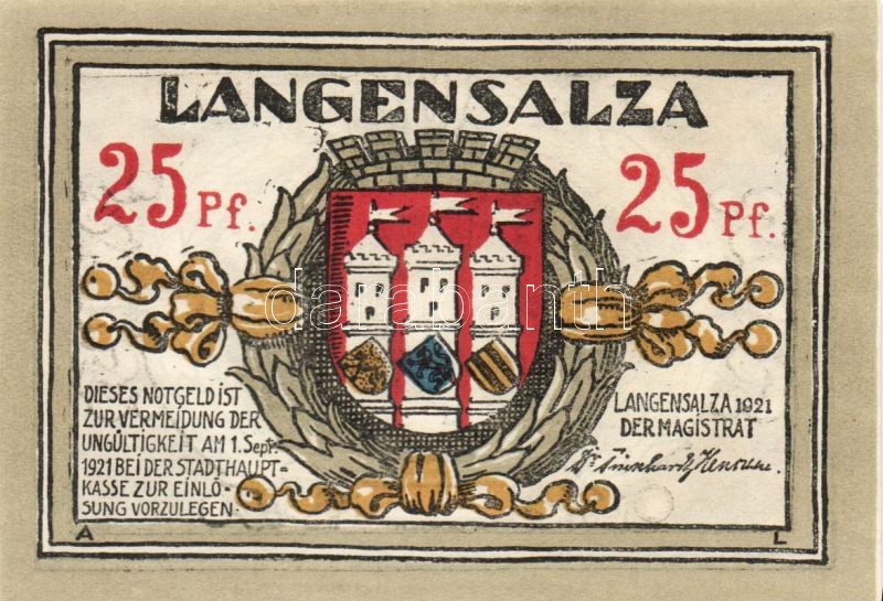 Német Birodalom/Weimari Köztársaság/ Langensalza 1921. 25Pf(6x) 6klf d... https://www.darabanth.com/de/98-Fernauktion/98.0/Numismatik/~306/Nemet-BirodalomWeimari-Koztarsasag-Langensalza-1921-25Pf6x-6klf-db-teljes-sor-TI~II228444
