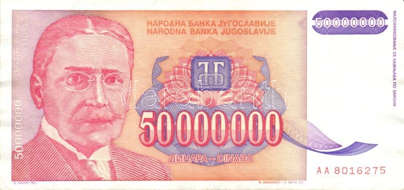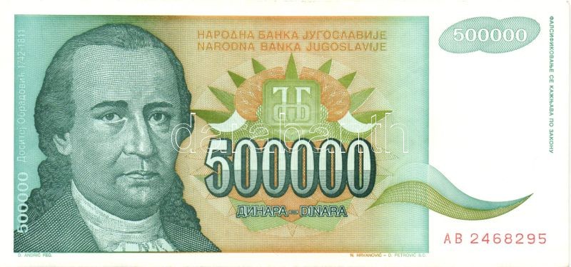 Jugoszlávia 1991. 100D, 10.000D + 1993. 5000D, 10.000D, 50.000D, 500.000D, 5000.000D, 50.000.000D (2x), 100.000.000D, 500.000.000D, 5000.000.000D + 1994. 10D, 100D, 1000D, 5000D T:I,II Összesen 16db (15klf)!