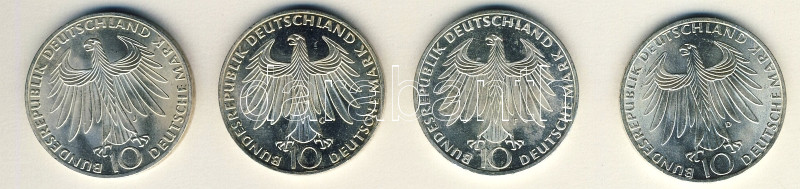 NSZK 1972D,F,G,J 10M "Sportler und Sportlerin" T:2 teljes sor https://www.darabanth.com/de/98-Fernauktion/98.0/Numismatik/~315/NSZK-1972D-F-G-J-10M-Sportler-und-Sportlerin-T2-teljes-sor~II229357