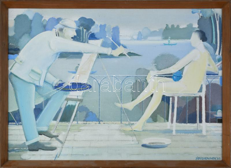 Neuberger István (1953-): Festő és modellje. Olaj, farost. Jelzett. Fakeretben. 48x69 cm