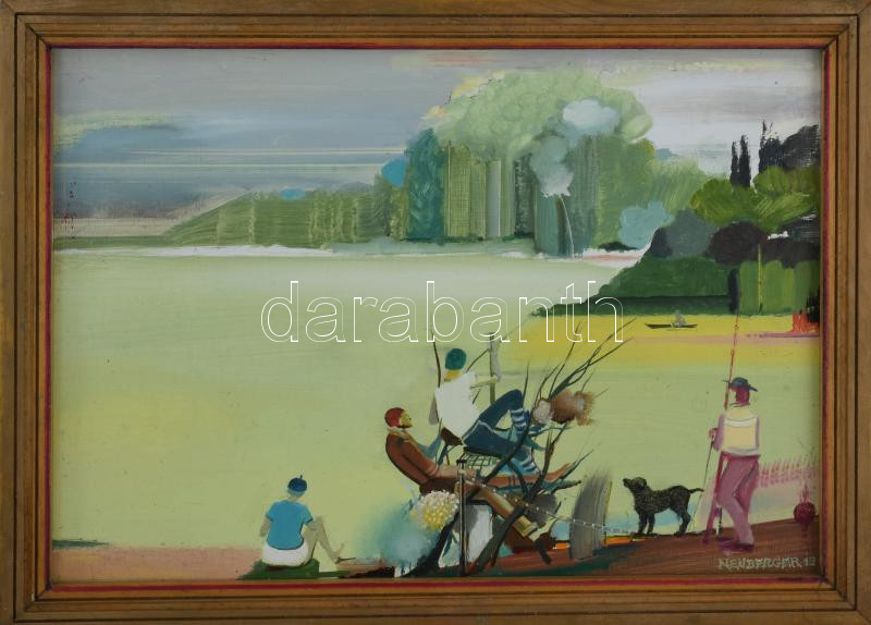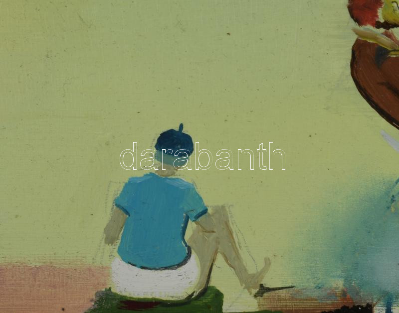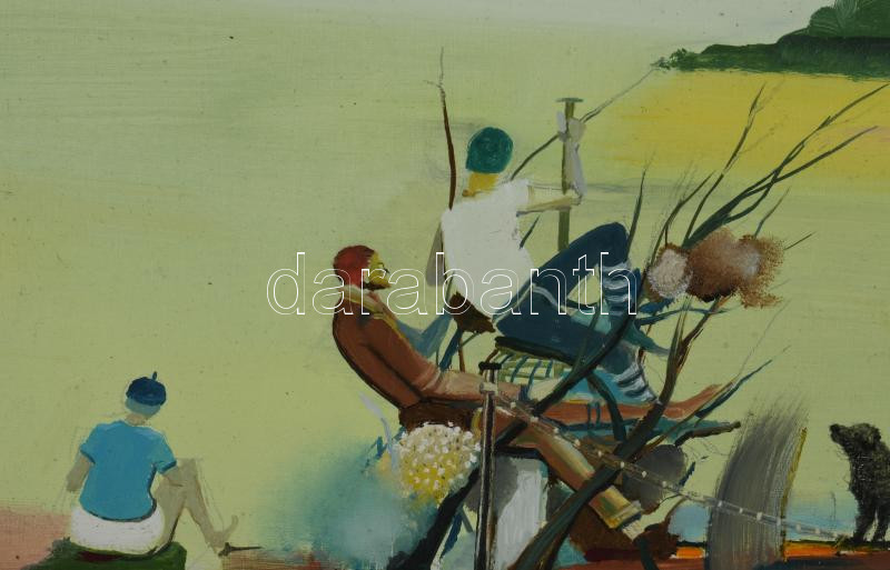 Neuberger István (1953-): Fiatalok a parton, 2019. Olaj, farost. Jelzett. Fakeretben. 30x42,5 cm