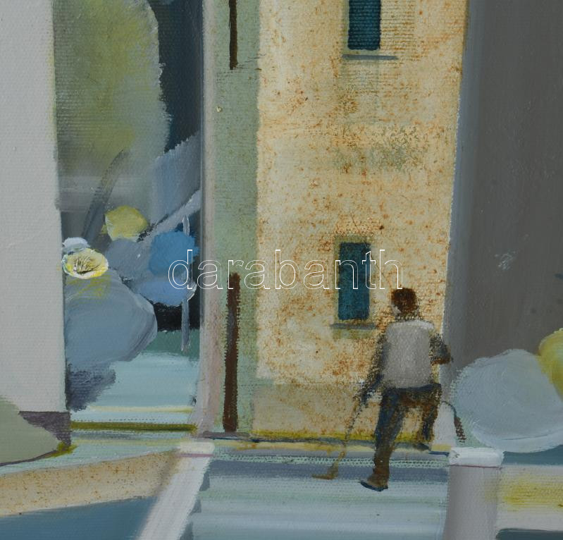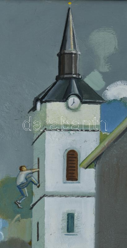 Neuberger István (1953-): Harangozó. Olaj, vászon. Jelzett. Fakeretben. 70x30 cm