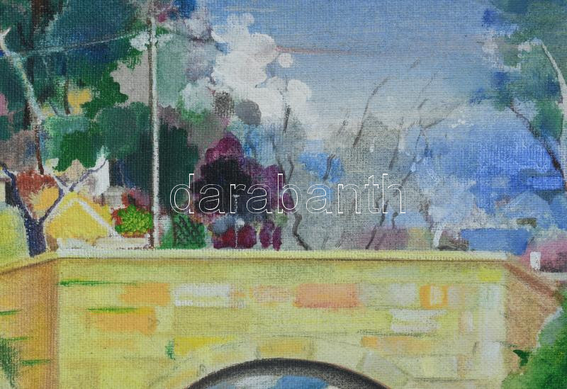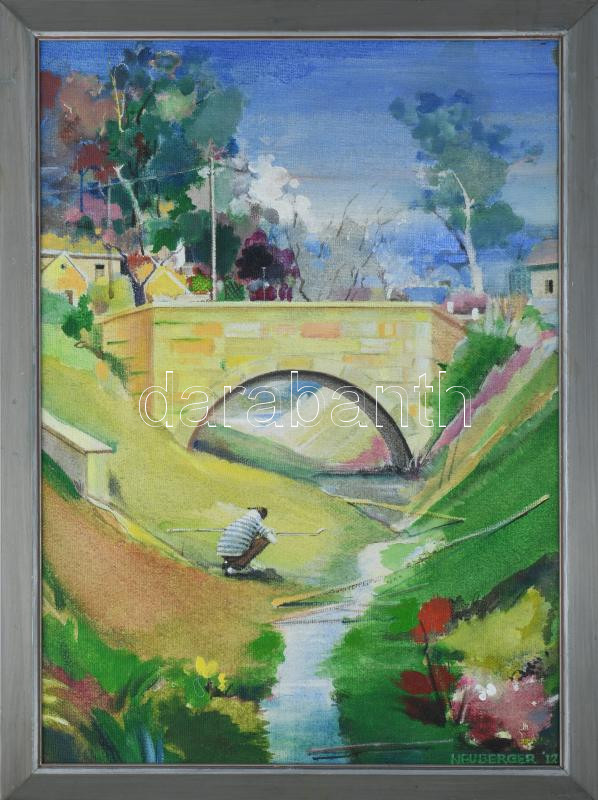 Neuberger István (1953-): Hidegkúti híd, 2012. Akril, farost. Jelzett. Fakeretben. 69x50 cm