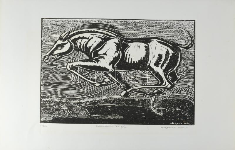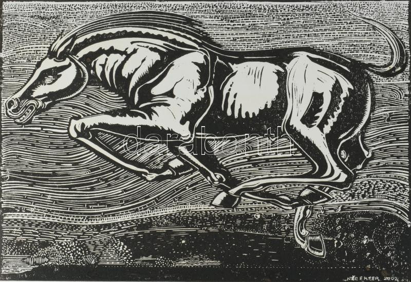 Neuberger István (1953-): Iram, 2002. Linómetszet, papír. Jelzett. Művészpéldány EA 5/10 számozással. 30x40 cm