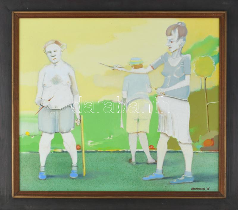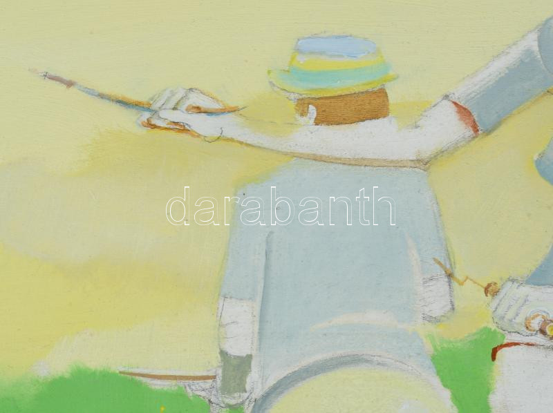 Neuberger István (1953-): Kezdő piktorok. Olaj, farost. Jelzett. Fakeretben. 54x63 cm