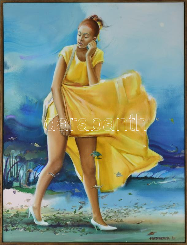 Neuberger István (1953-): Viharos telefonhívás, 2019. Olaj, vászon. Jelzett. Fakeretben. 80x60 cm