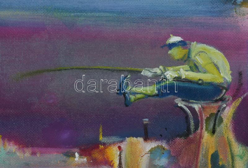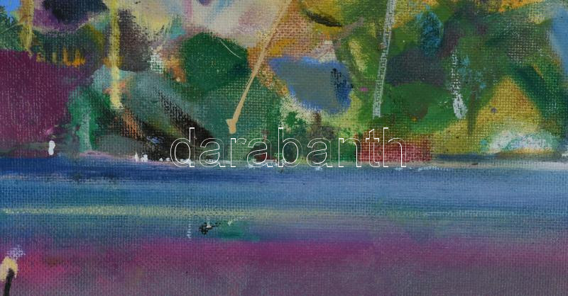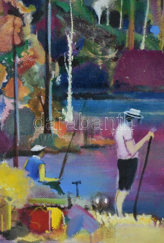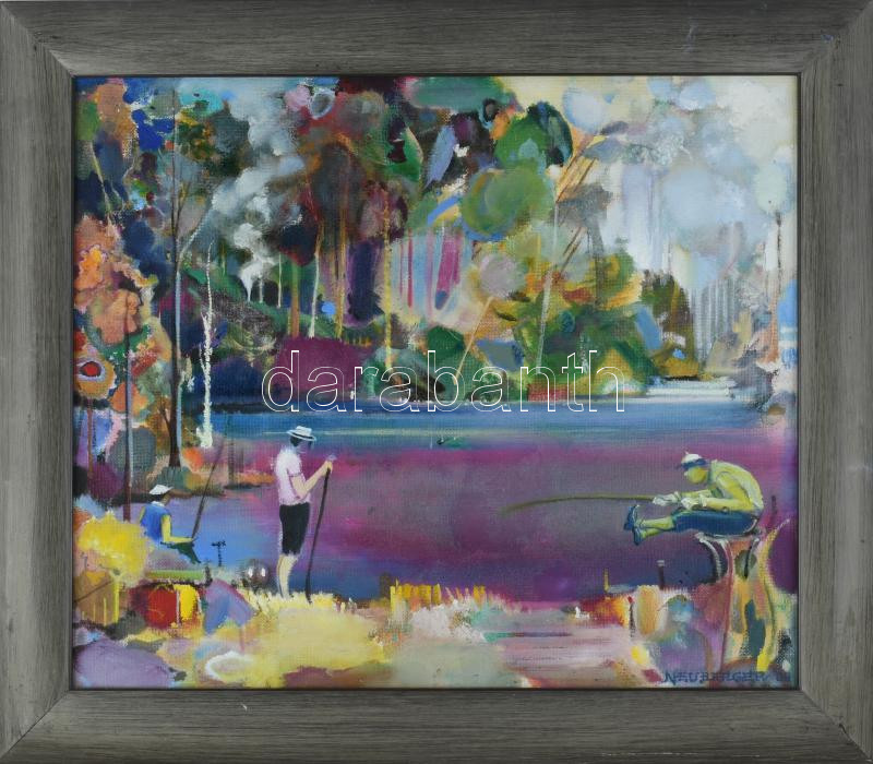 Neuberger István (1953-): Vízparti élet. Olaj, farost. Jelzett. Fakeretben. 48x58 cm