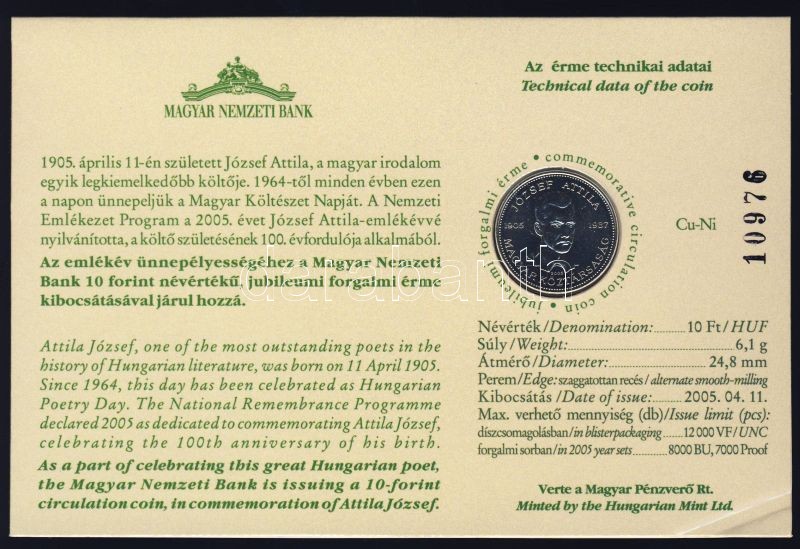 https://www.darabanth.com/en/100-Online-auction/100.0/Numismatics/~100022/2005-10Ft-Jozsef-Attila-szamozott-emleklapon-T1-Csak-12000db-letezhet~II237344