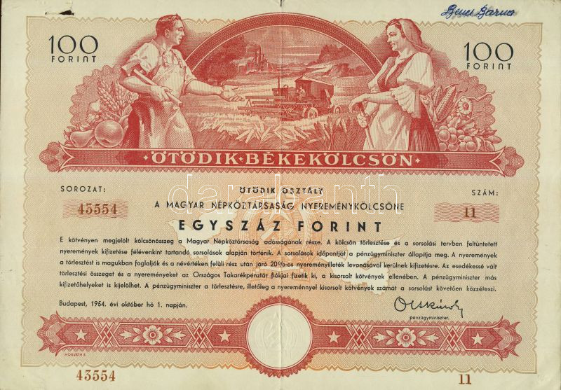 https://www.darabanth.com/en/101-Online-auction/101.0/Numismatics/~30010/1954-Otodik-Bekekolcson-nyeremenykolcsone-100Ft-rol~II238816