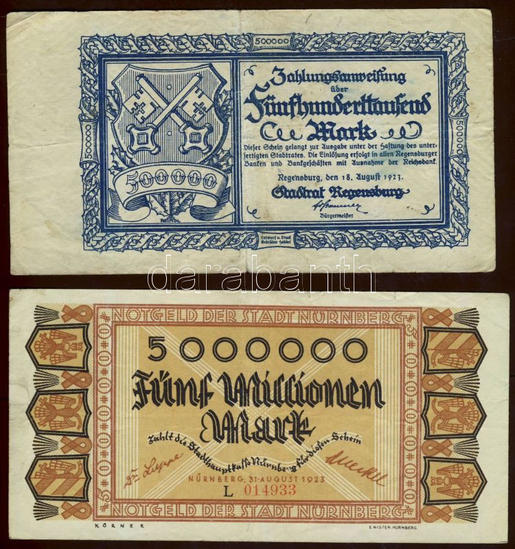 Német Birodalom/Weimari Köztársaság/ Nürnberg 5000.000M + Regensburg 5...