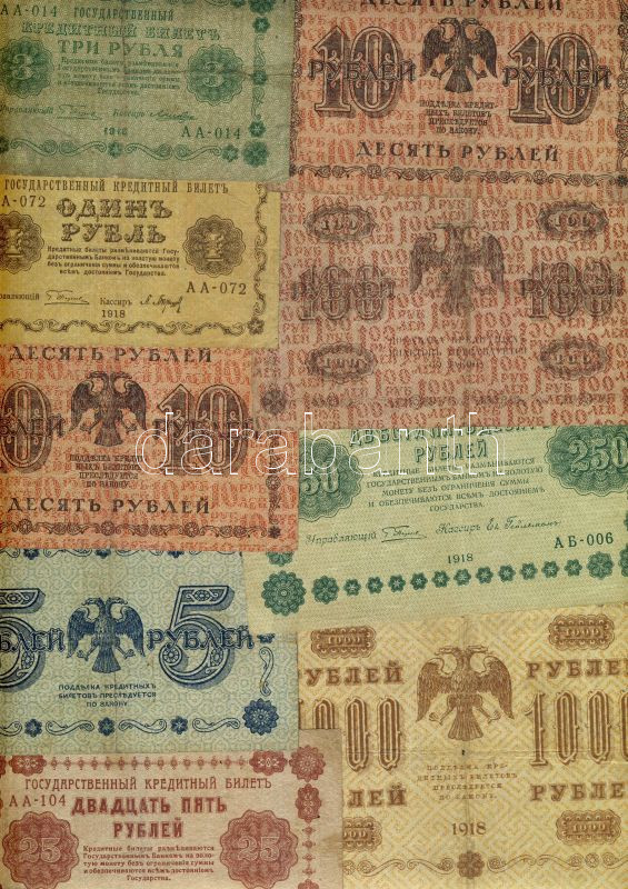 Oroszország 1918. 1R, 3R, 5R, 10R, 25R, 50R, 100R (2x), 250R, 500R, 1000R T:III,IV