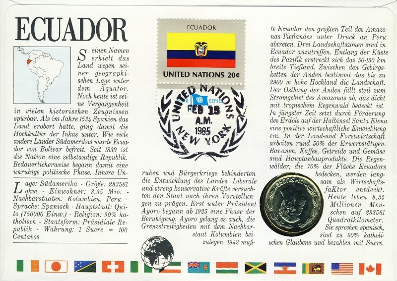 Ecuador 1981. 1S érmes, bélyeges boríték T:1