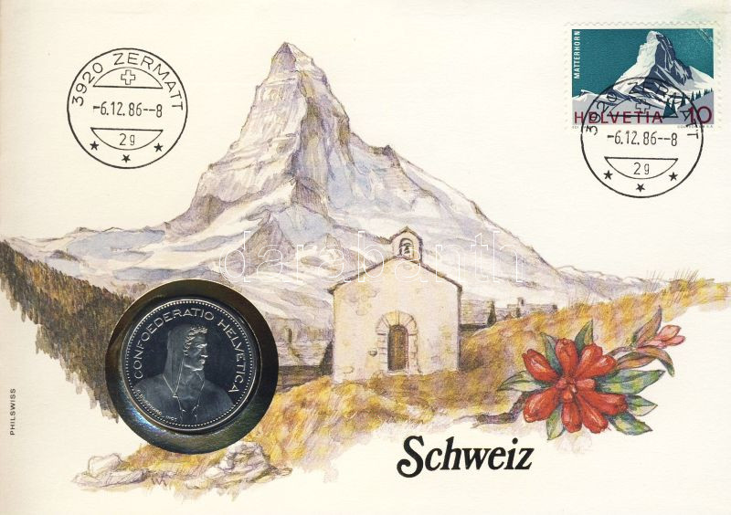 Svájc 1985. 5Fr érmés, bélyeges borítékon, ismertetővel T:1